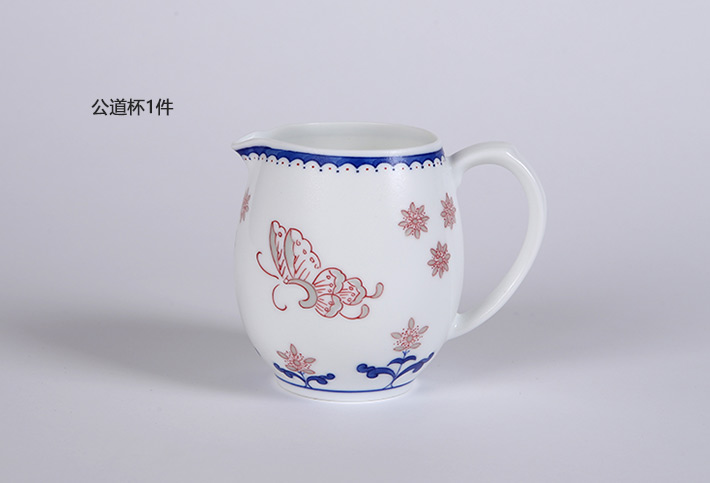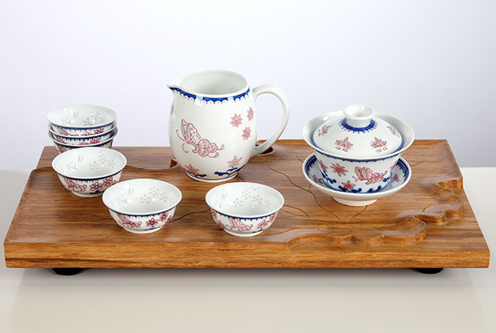 8頭青花釉里紅茶具蝶舞