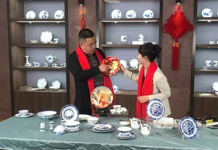 2021年12月30日,景德鎮(zhèn)陶瓷集團(tuán)聯(lián)合江西省電視臺(tái)——都市頻道及景德鎮(zhèn)資深頭部直播團(tuán)隊(duì)全方位宣傳展示國瓷紅葉產(chǎn)品,并以優(yōu)惠價(jià)格回饋廣大消費(fèi)者。集團(tuán)黨委委員邢浩作為企業(yè)形象“代言人”,走進(jìn)直播間,傳播陶瓷文化,宣介“國瓷紅葉”特色。