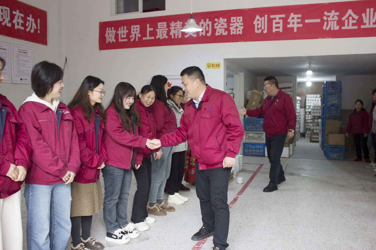 在金品陶公司、紅葉公司一廠、三廠、研究所和窯具廠,領(lǐng)導(dǎo)們與夾道歡迎的員工致以新春祝福。希望生產(chǎn)口在提質(zhì)增效上要有新?lián)?dāng)。