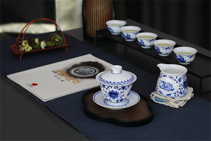 8頭玲瓏功夫茶具開(kāi)堂山水蓋碗